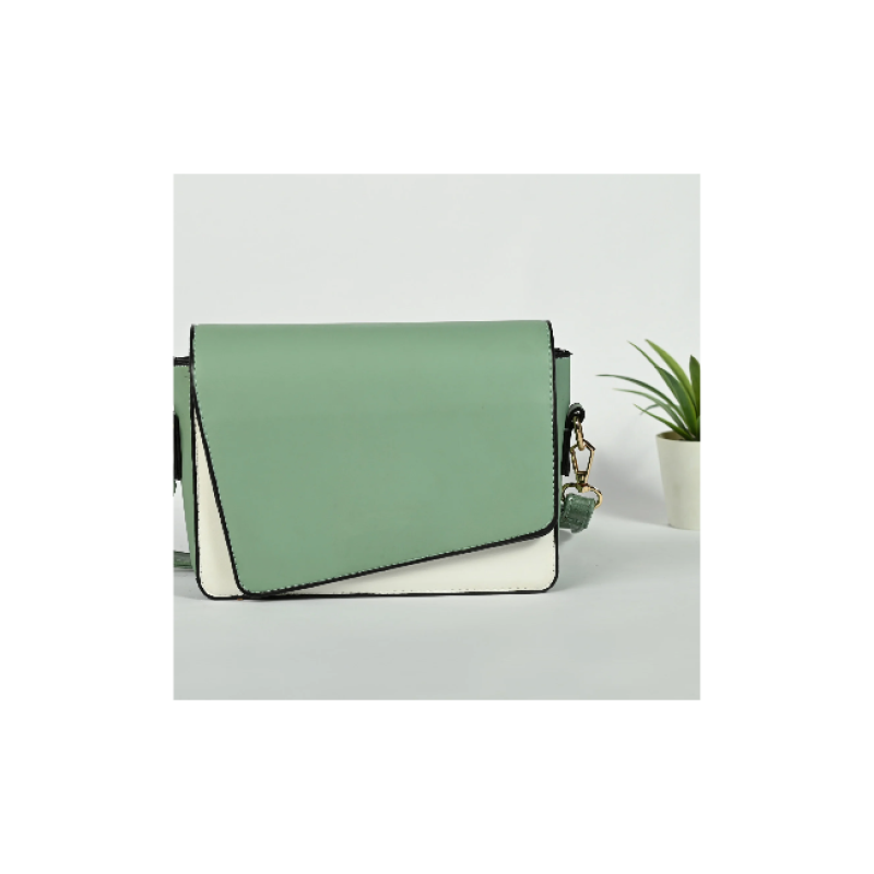 Olive and white, green stylish women's leather shoulder bag with spacious interior and removable strap.